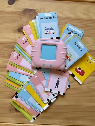 Con VerbaLingo, las mamás pueden ofrecer a sus hijos una manera de aprender inglés jugando, sin la sobrecarga de pantallas. La interacción física con las tarjetas estimula el cerebro de los niños de forma natural y relajada.